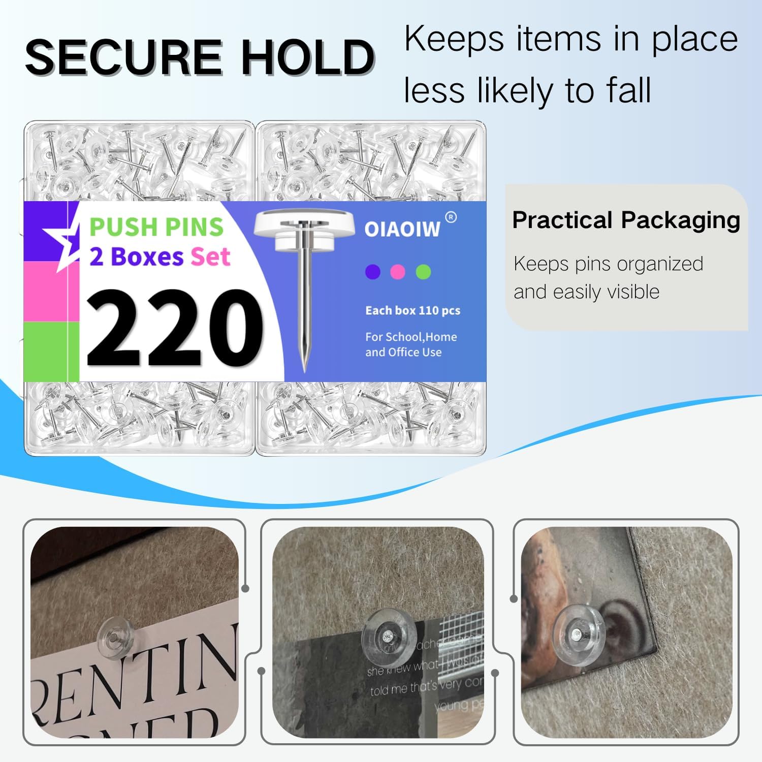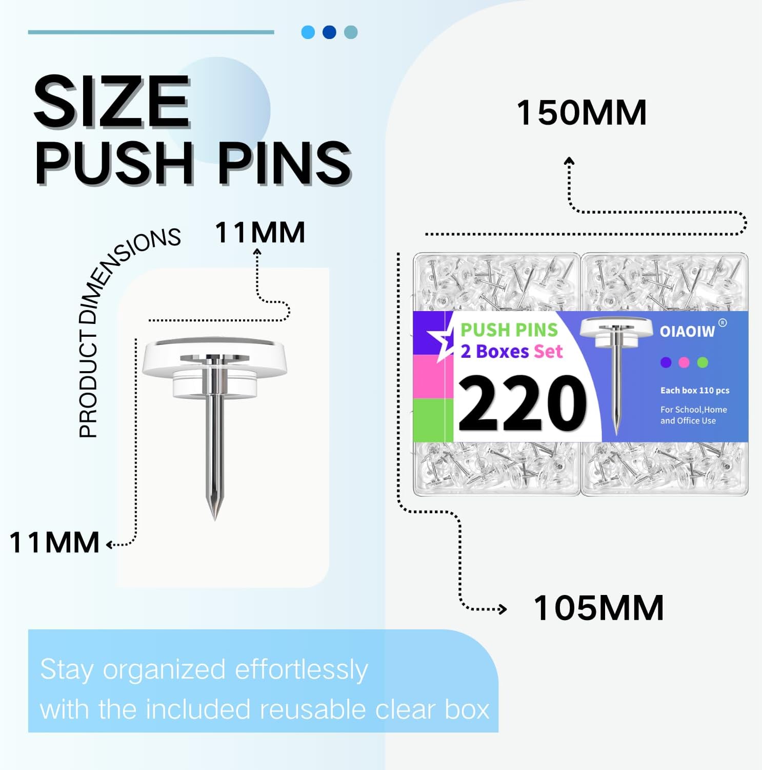 220 PCS Flat Clear Push Pins for Wall Thumb Tacks for Walls Flat thumbtacks Push pin for Bulletin Board Shadow Box Display Thumbtack for Cork Board (2 Boxes Clear)