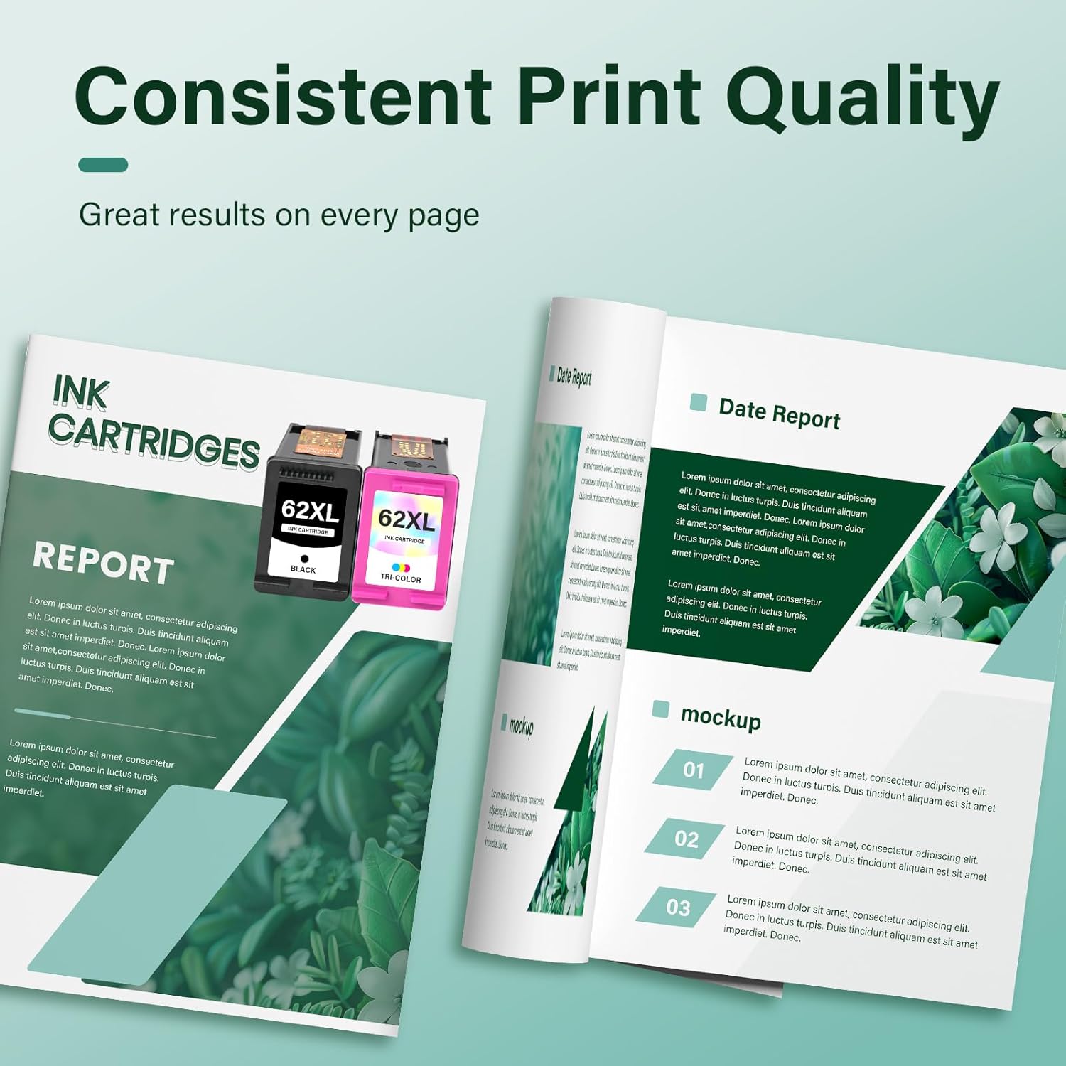 - Package Content: 62XL 62 Ink Cartridges Black and Color Combo Pack (1 × 62XL Black, 1 × 62XL Tri-color, 1 × User Guide)