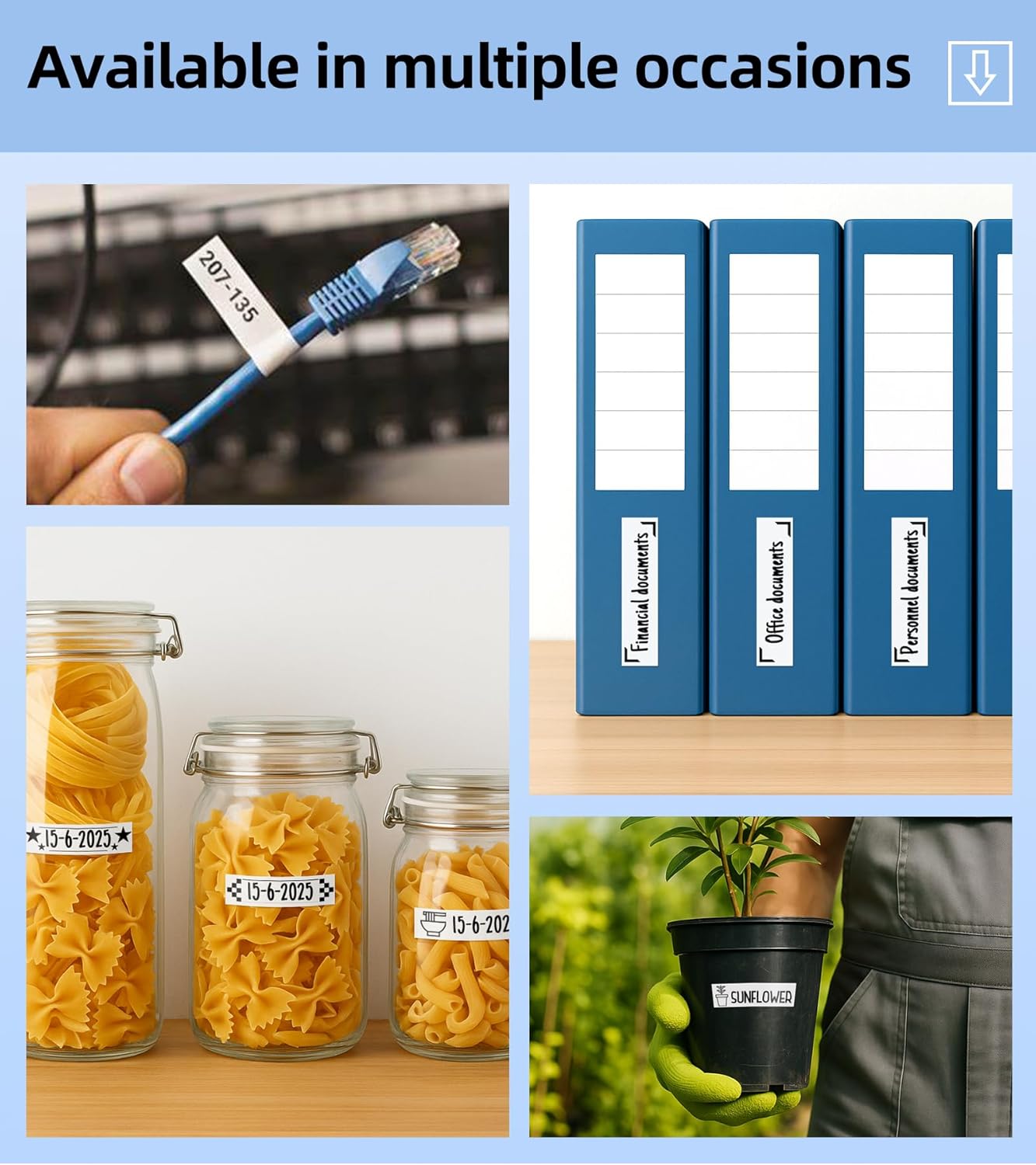 - 【Compatible for Brother P-Touch Label Maker Refills】 PTD200, PTD201, PTD202, PTD215e, PTD400, PTD400AD, PTD400VP, PTD450, PTD600, PTD600VP, PTD800W, PTE100, PTE105, PTE110, PTE300, PTE500, PTE550W, PTE800W, PTH100, PTH103W, PTH105, PTH300, PTH300LI, PTH500, PTH500LI, PTP300BT, PTP700, PTP710BT, PTP715eBT, PTP750W, PTP900, PTP900W, PTP910BT, PTP950NW, PT200, PT300, PT300B, PT2730 and more