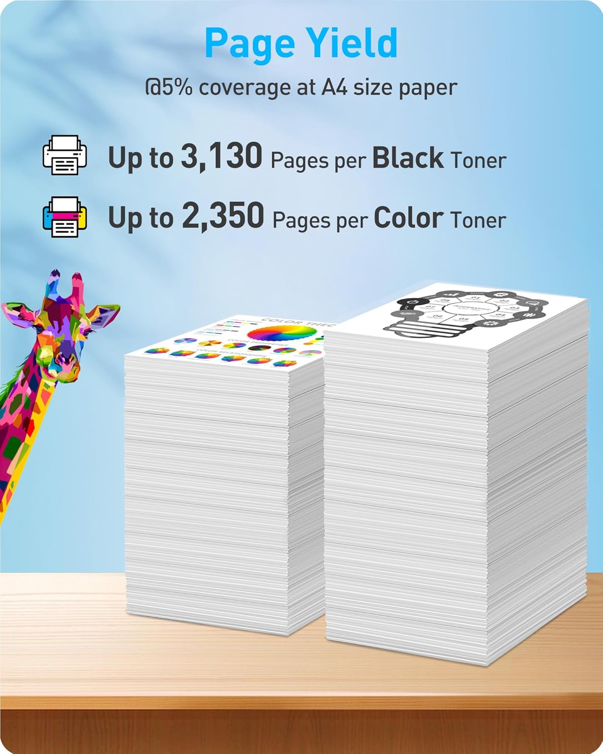 - Page Yield: up to 3,130 pages per black toner, up to 2,350 pages per color toner, @5% coverage at A4 size paper