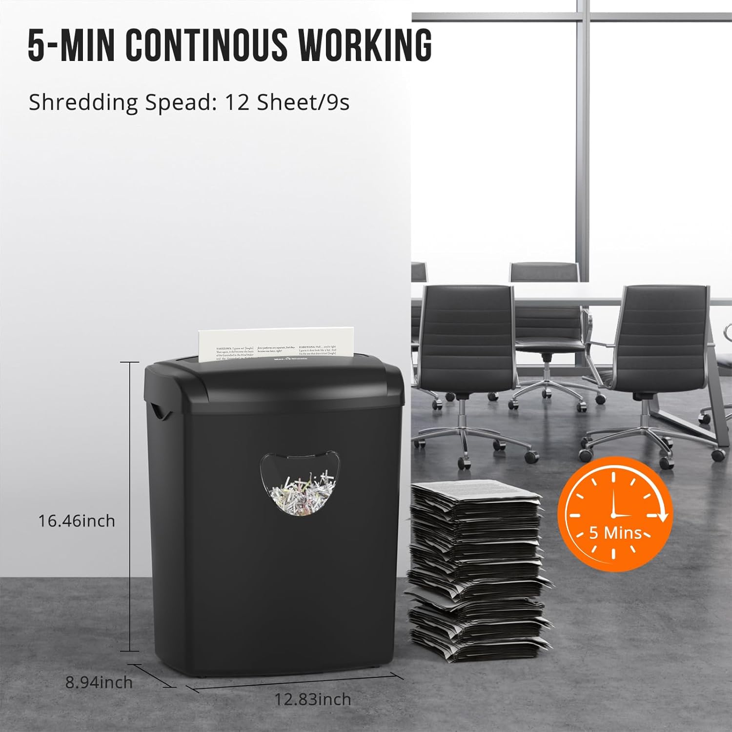 12-Sheet Cross-Cut Shredder (P-4 Security),Destroy Credit Cards/Staples,5.5 Gal Bin,70dB Quiet,Auto/Reverse Modes for Office & Home(ETL Certified)