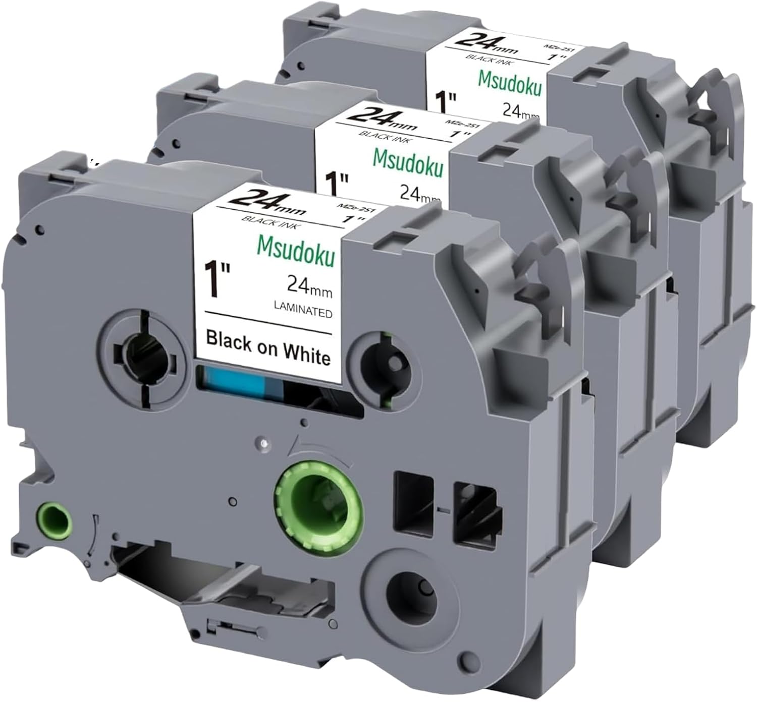 Tz 251 Tze 251 1 Inch 24mm Laminated White Compatible with Brother P Touch Label Maker Tape TZe251 TZe-251 Label Tape for PT-D600 PT-P710BT PT-P700, Black on White, 1 Inch x 26.2 Feet, 3 Pack