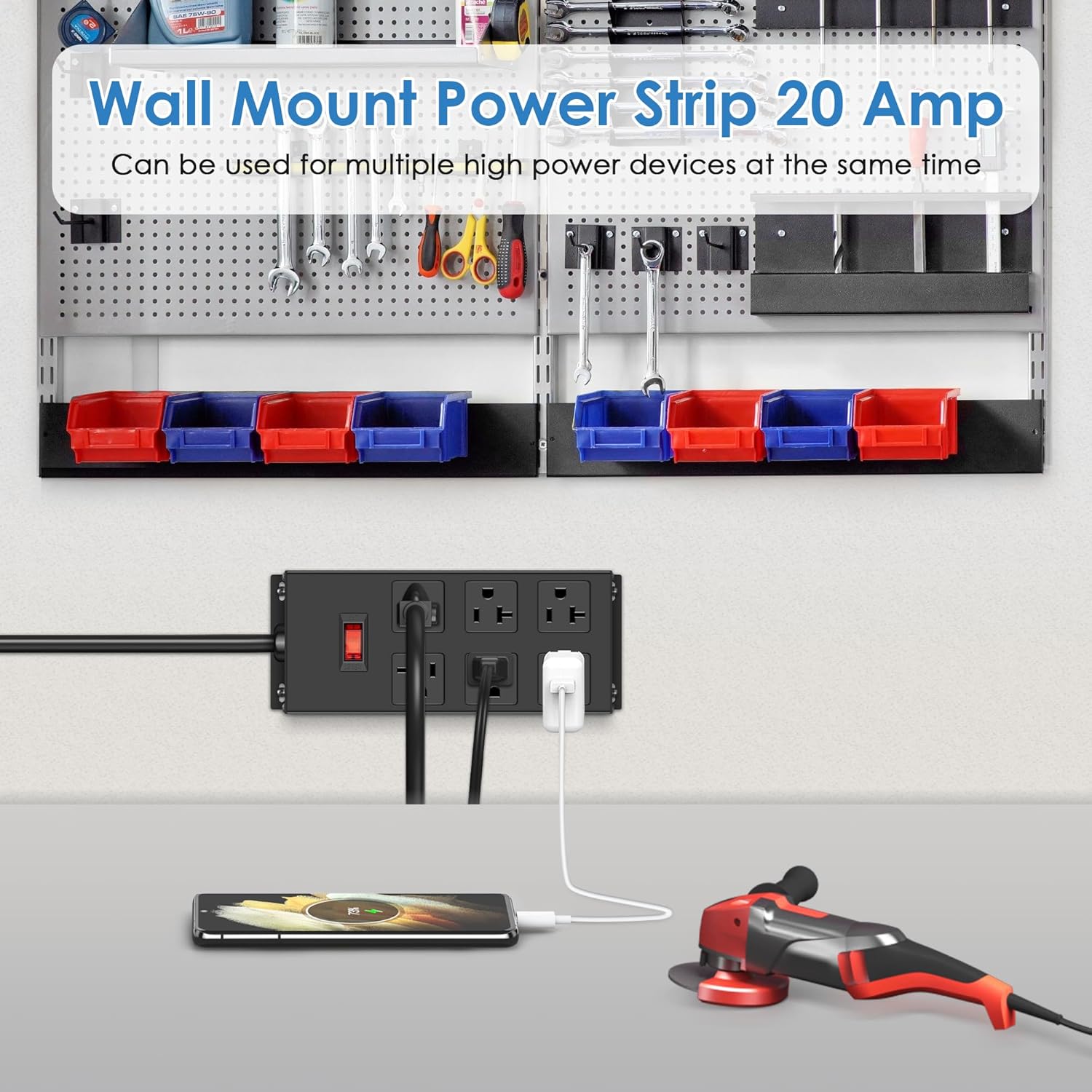 - Wall Mount Power Strip: 20a power strips to be securely installed in various applications, industrial, workshops, shop, offices and workbenches, etc. We will provide you with a quality shopping experience, there are 2 year replacement time, If you have any questions please ask us for support.