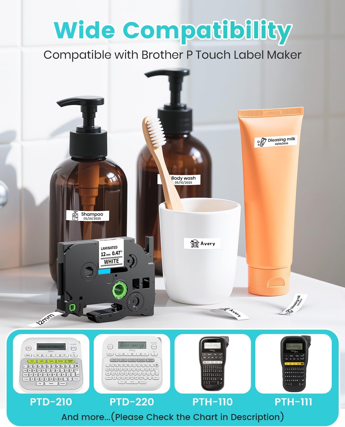 - 【Compatible with Brother P touch Label Maker】PT-D200, PT-D210, PT-D400, PT-D600, PT-H100, PT-H110, PT-P300BT, PT-P700, PT-P710BT, PT-H300, PT-H500LI, PT-D450, PT-D800W, PT-1190, PT-1230PC, PT-1750, PT-1880, PT-1890, PT-2040, PT-2430PC, PT-6100, PT-9600, and more