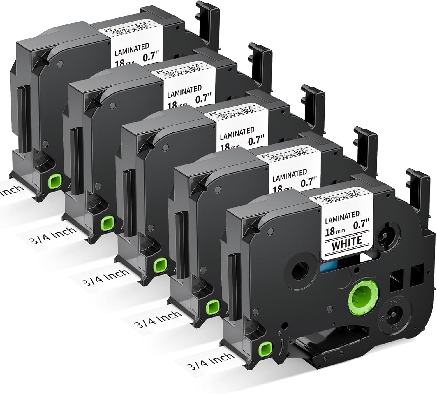 - Package included: 5-Pack compatible with Brother PTouch Label Tapes TZe-241/TZ-241/TZ241, Black on White, 0.7 Inch (18mm) x 26.2 feet (8m) for each tape