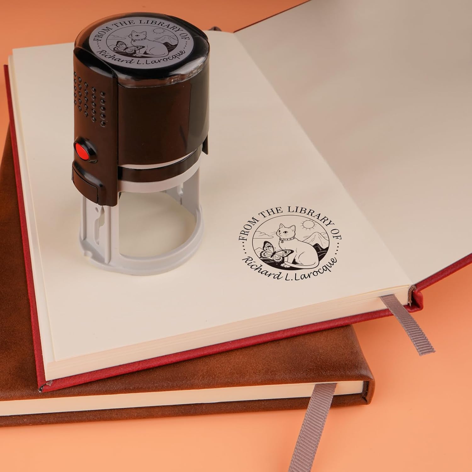 Custom Self Inking Stamp | Book Stamp Personalized Library Gifts for Book Lovers, Readers, Teachers (Cat 01)