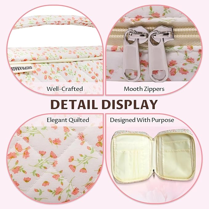 shirabags Quilted Bible Cover Case for Women - Elegant Cotton Bible Bag for Study, Church, Christian Gifts for Women (Pink Floral, M)