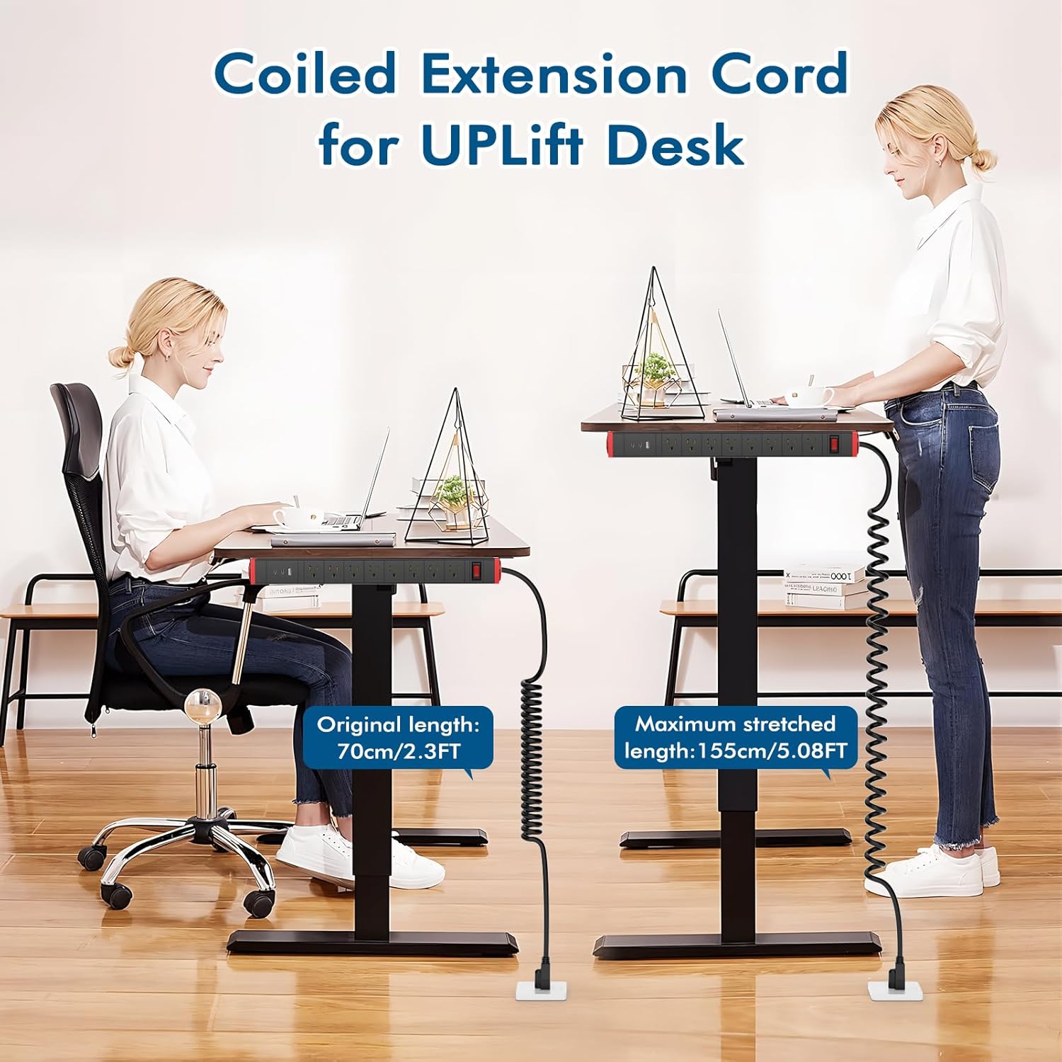 - Surge Protector Power Strip with Coiled Cord: The 8 wide spaced power strip turns one wall outlet into 8 with 1200 joules of surge protection, protecting your home/office equipment TV, computer, printers,and routers from voltage fluctuations, surges, and spikes. And with a coiled power cord.Coiled cable keep things neat and organized,that makes it a perfect match for using with a standing / adjustable desk.