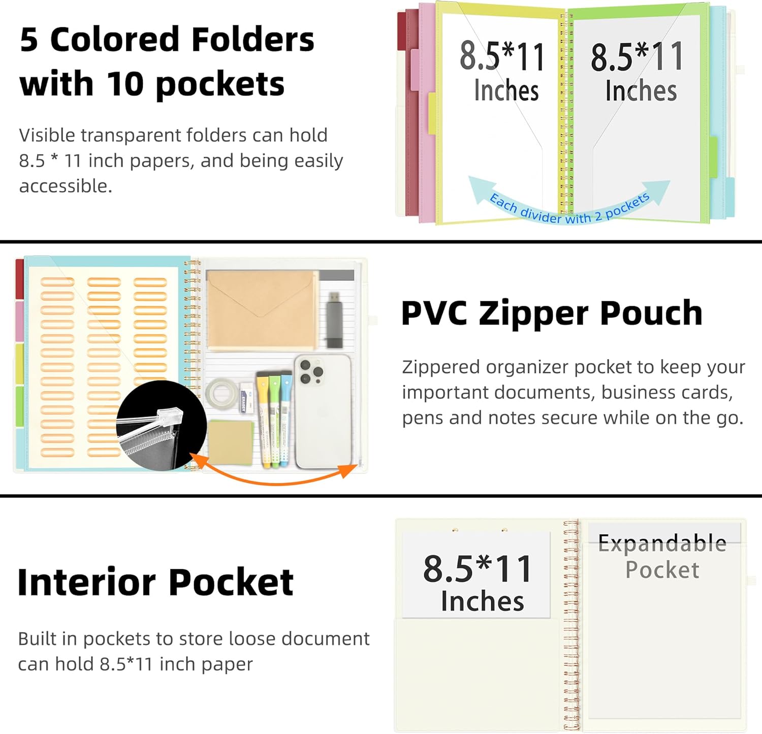- 【Stay Organized】 Features interior pocket to store letter size papers and important loose documents. Clipboard comes with 5 extra Plastic Colour Folders with 10 pockets fit in all standard US letter size sheets(11*8.5''), plus 72 file folder labels self adhesive stickers for organized use.