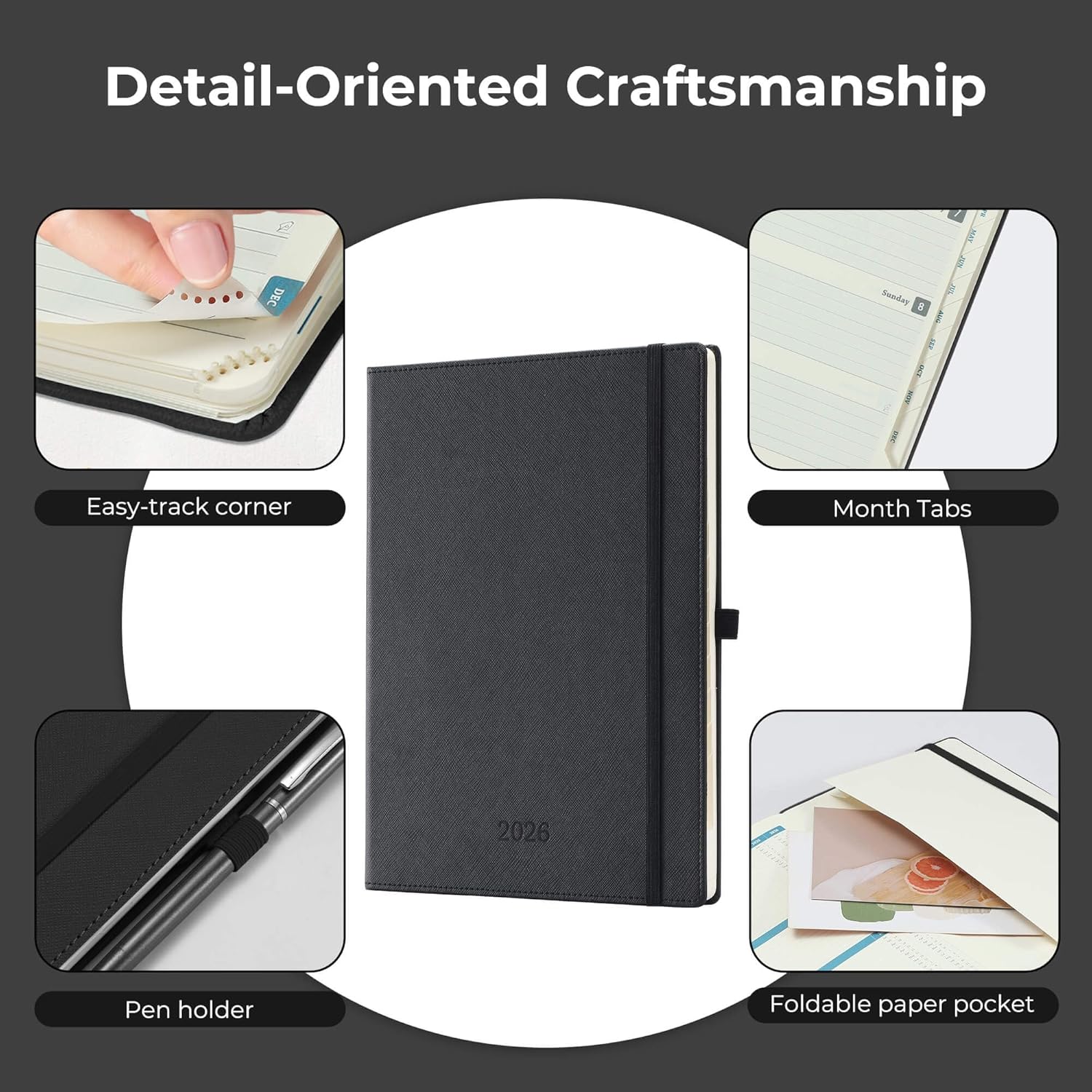 - Professional Grade Material for Your Daily Planner: Crafted with FSC 100GSM thick paper, this 2026 planner ensures good writing with markers while gentle on your eyes through its ivory white pages. The leather soft cover and lay flat binding make it a calendar planner companion for busy professionals, students, and families