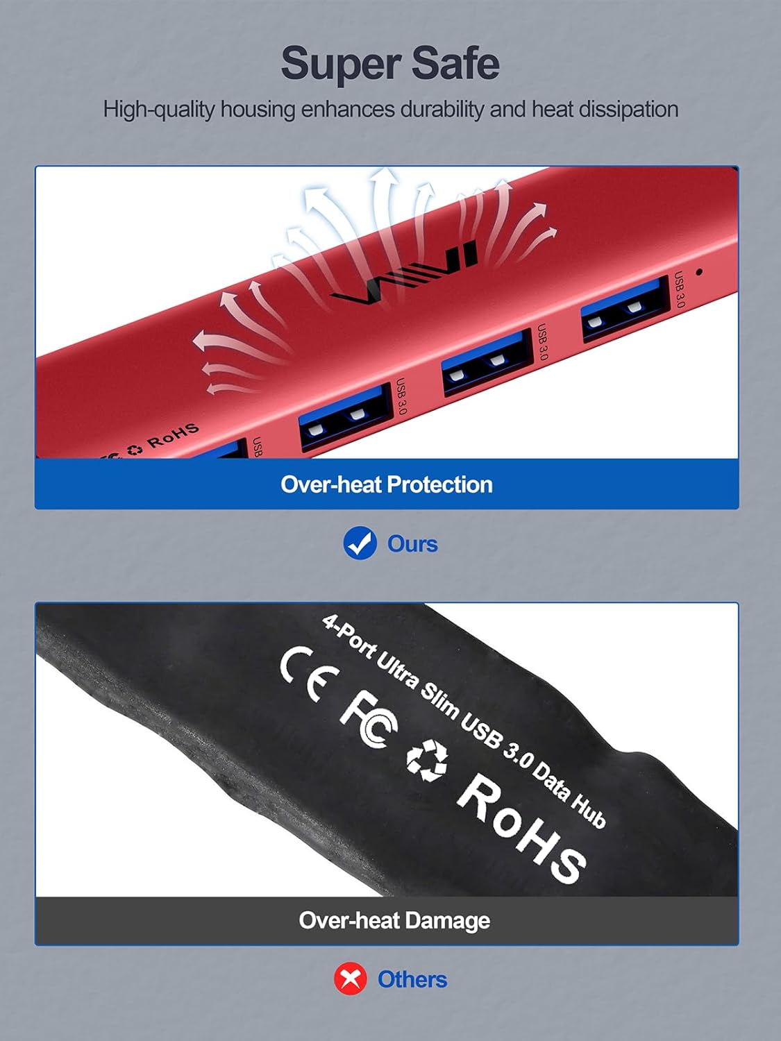 - 4 Ports USB 3.0 Hub: The USB splitter extends your device with 4 additional USB 3.0 ports (charging not supported). Supports 4 ports working simultaneously, ideal for connecting USB peripherals such as flash drives, mice, keyboards and printers. No need driver.