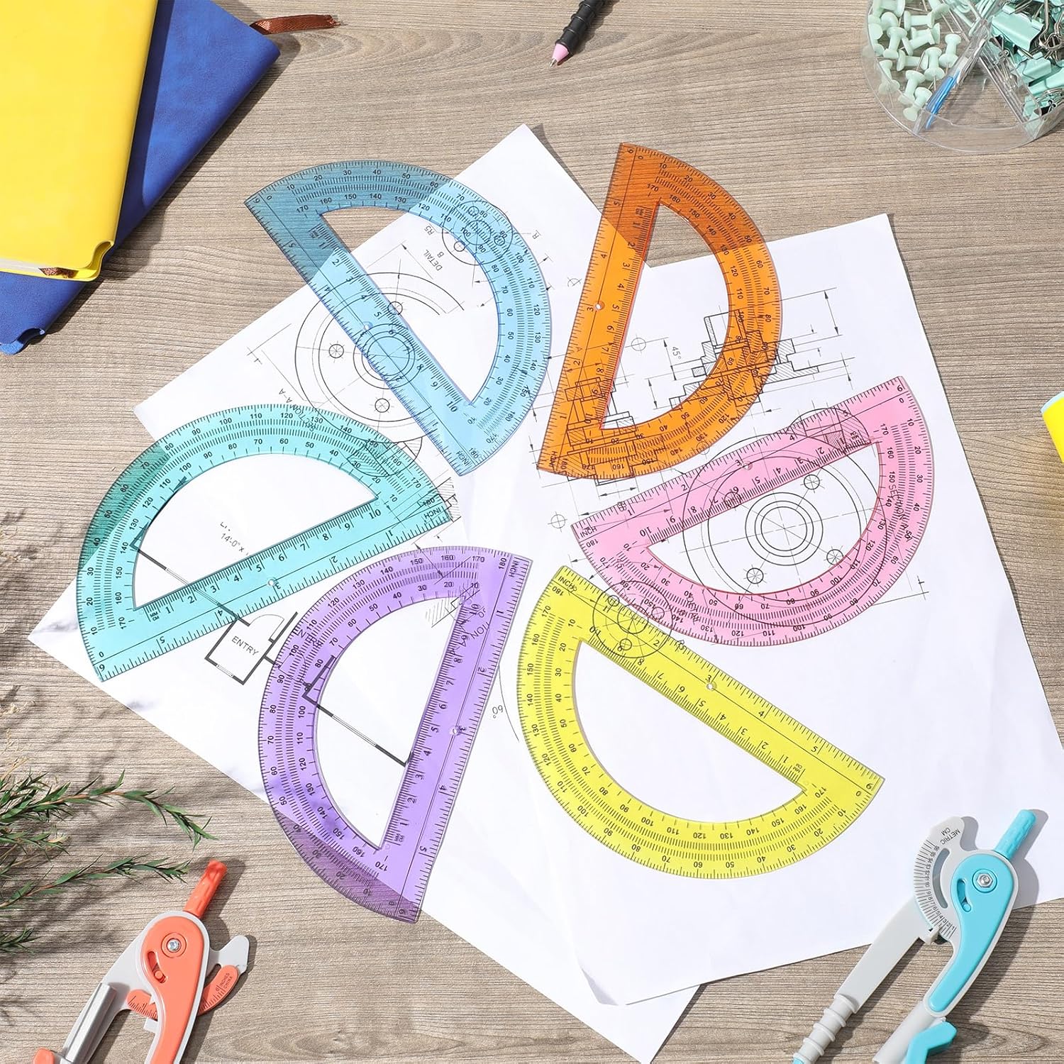 - 6 Compass and Protractor Set: Compasses and protractors are suitable for drawing circles and measuring angles, including six colors of red, pink, yellow, blue, green, and purple, with bright color combinations, the compass comes with round corner design on compass needle, safe and reliable to use without worrying about scratching, suitable for students, teachers, engineers, designers, artists, etc