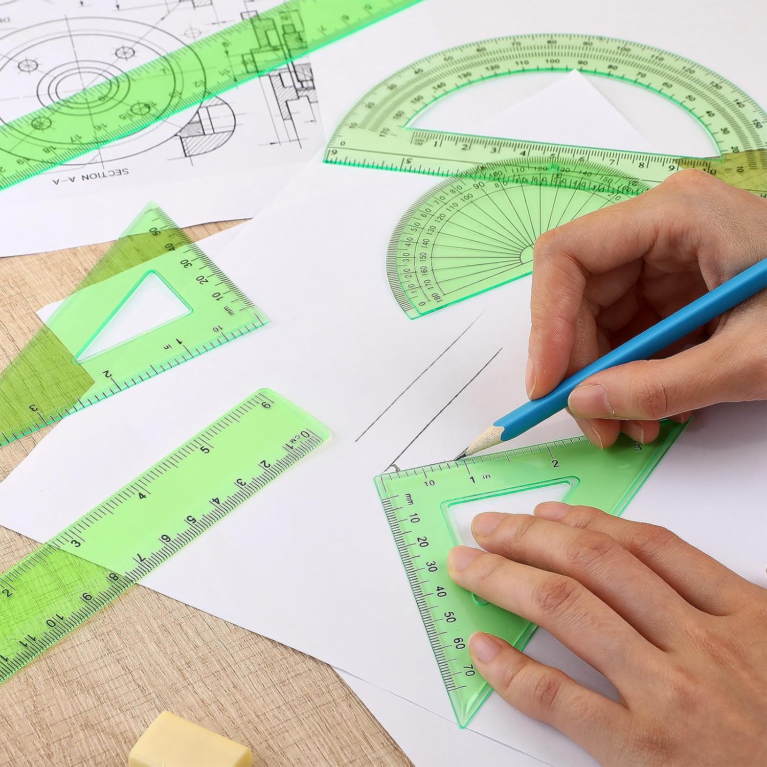 - Quality material: the green protractor ruler set is made of quality plastic, durable and sturdy, not easy to break and crack, with a certain thickness controlled, can serve yo for a long time; A practical measuring tool for artists, designers, architects, engineers, students and so on