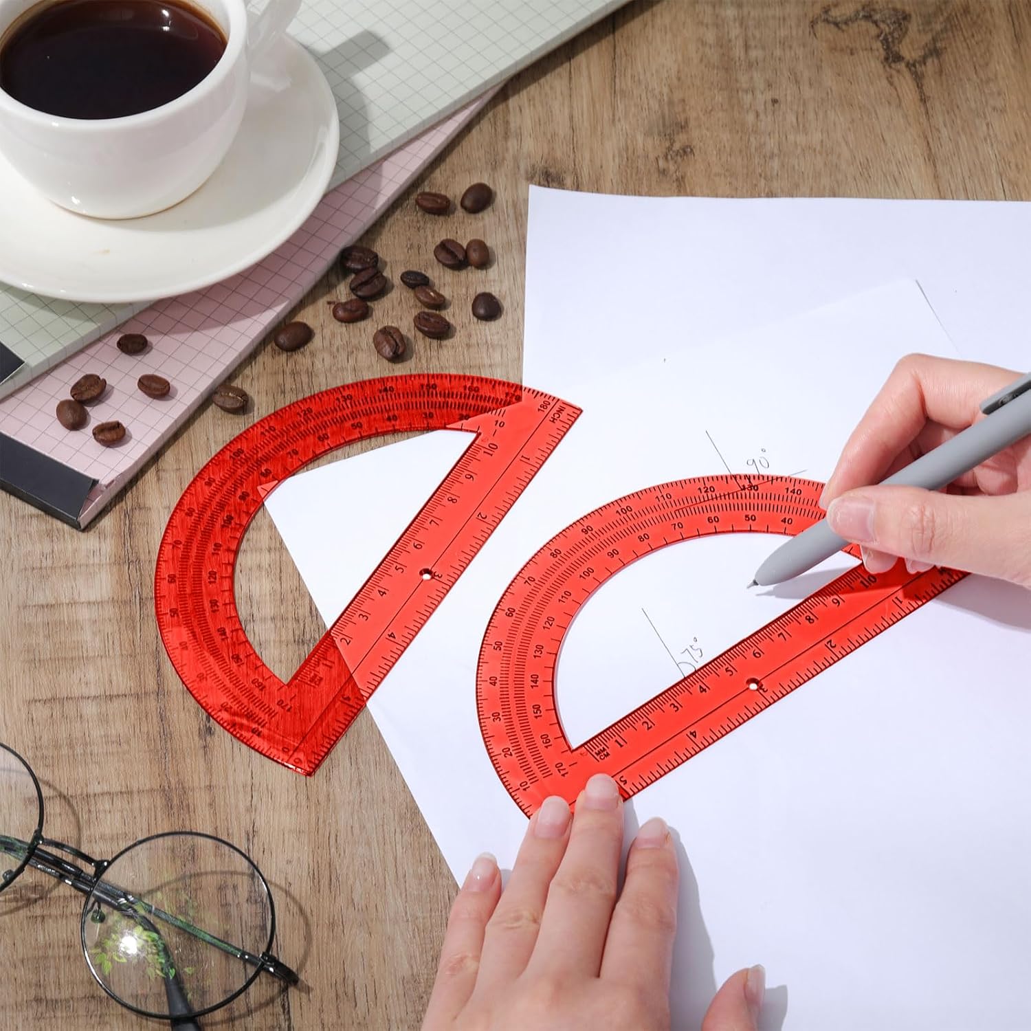 Zonon 2 Pcs 6 Inch Plastic Protractor Math Protractors 180 Degrees Angle Measurement, Translucent for Geometry Classroom Kid Student School Office Supplies(Red)