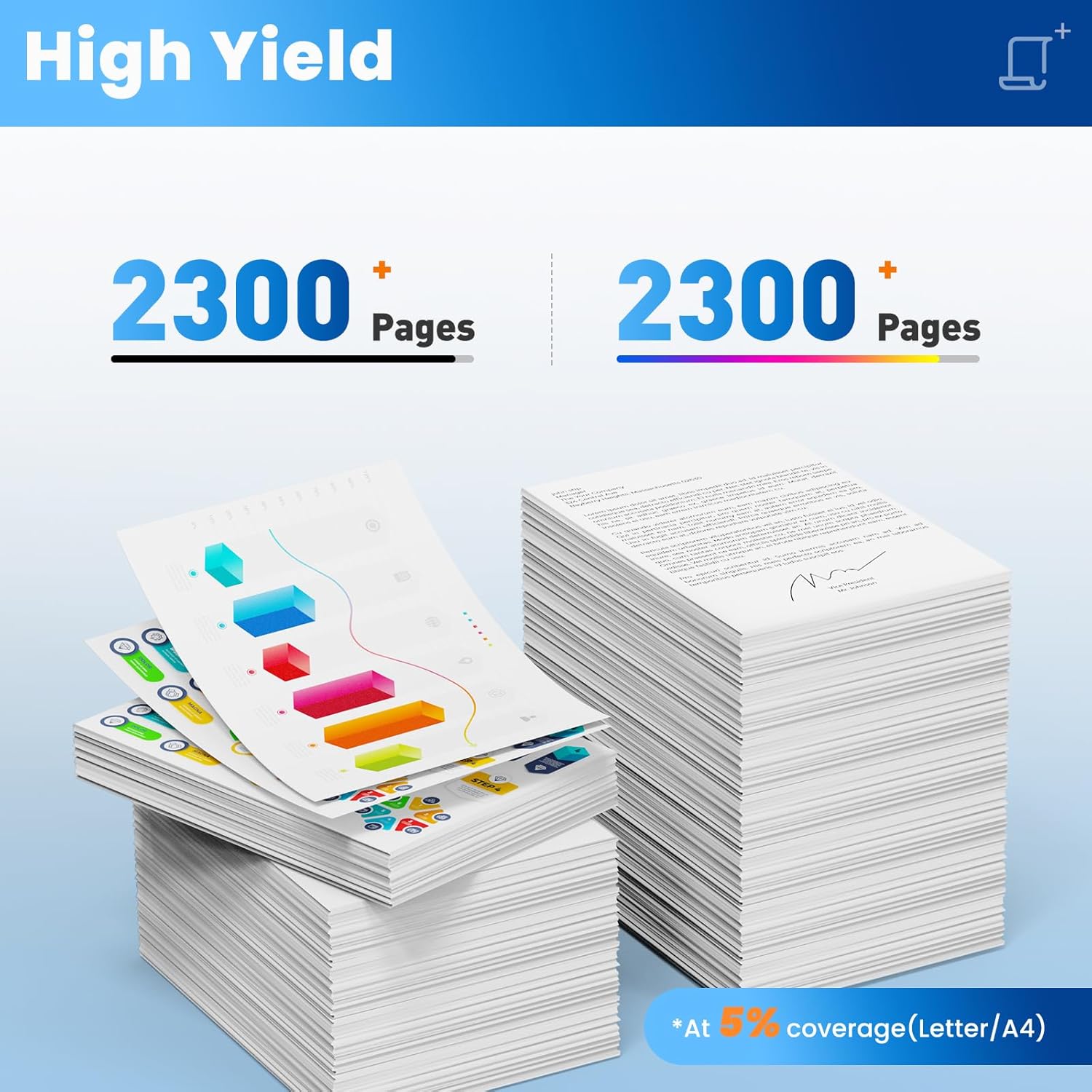 - 410A Toner Cartridge Yield (approx.): 410A toner cartridges 4 pack high yield up to 2,300 pages per 410A black toner cartridge (Letter/A4, at 5% Coverage)