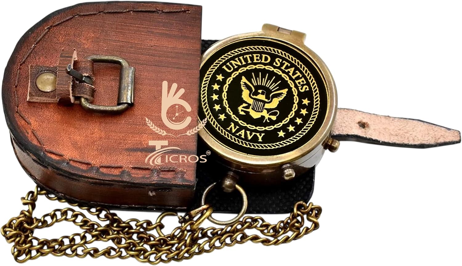 - UNITED STATES NAVY ENGRAVED BRASS COMPASS - Features the bold emblem etched into the front cover — a tribute to honor, sacrifice, and service. A perfect collectible and symbol of pride for Navy sailors and veterans.