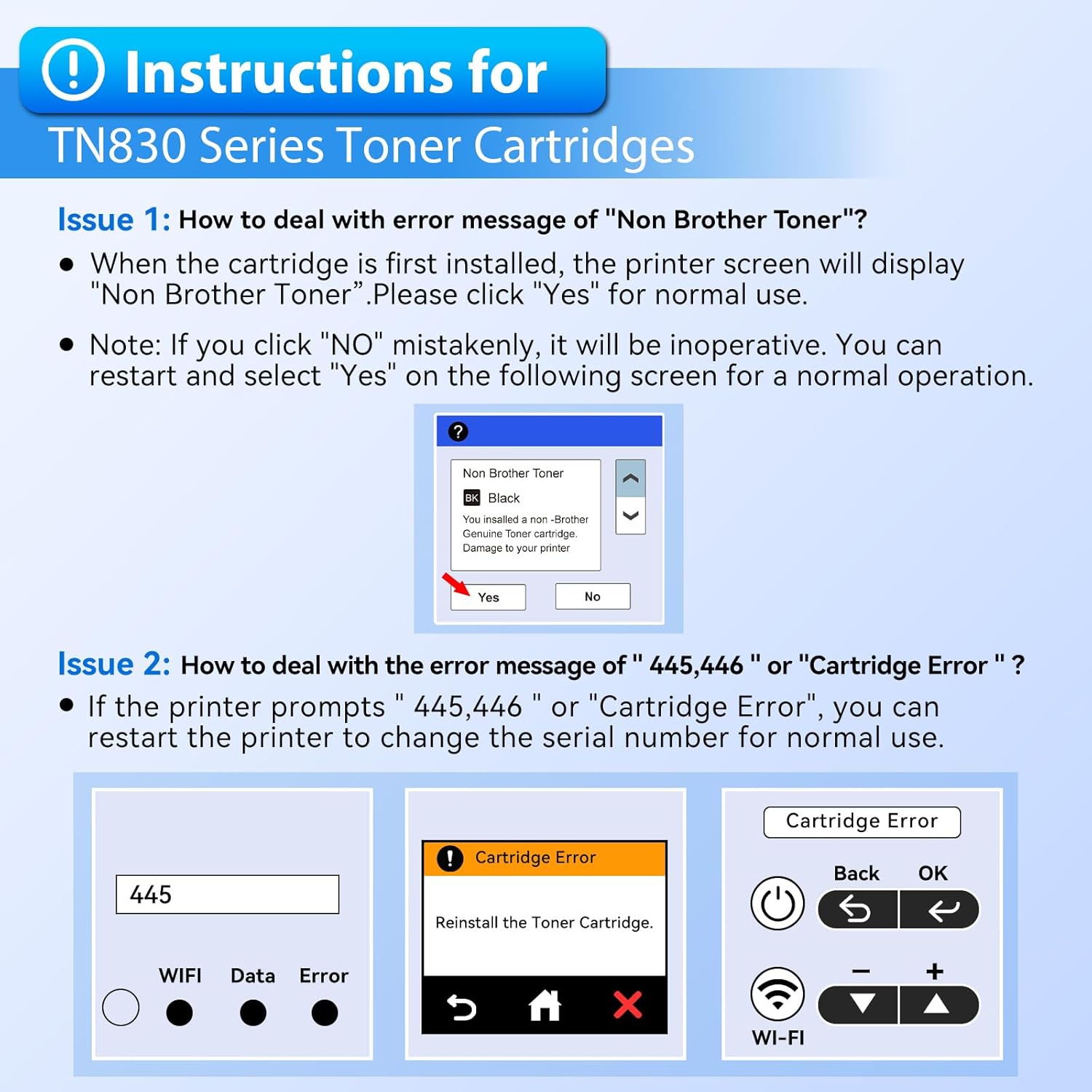 - [Superior Quality]: Utilizing premium materials, advanced automated manufacturing, quality control measures, and rigorous product testing,ZIPRINT tn830 tn830XL tn830 xl/v/rtoner cartridge Kit delivers more consistent print performance. No matter what problem you encounter, please feel free to contact us. We will answer your email within 24 hours.
