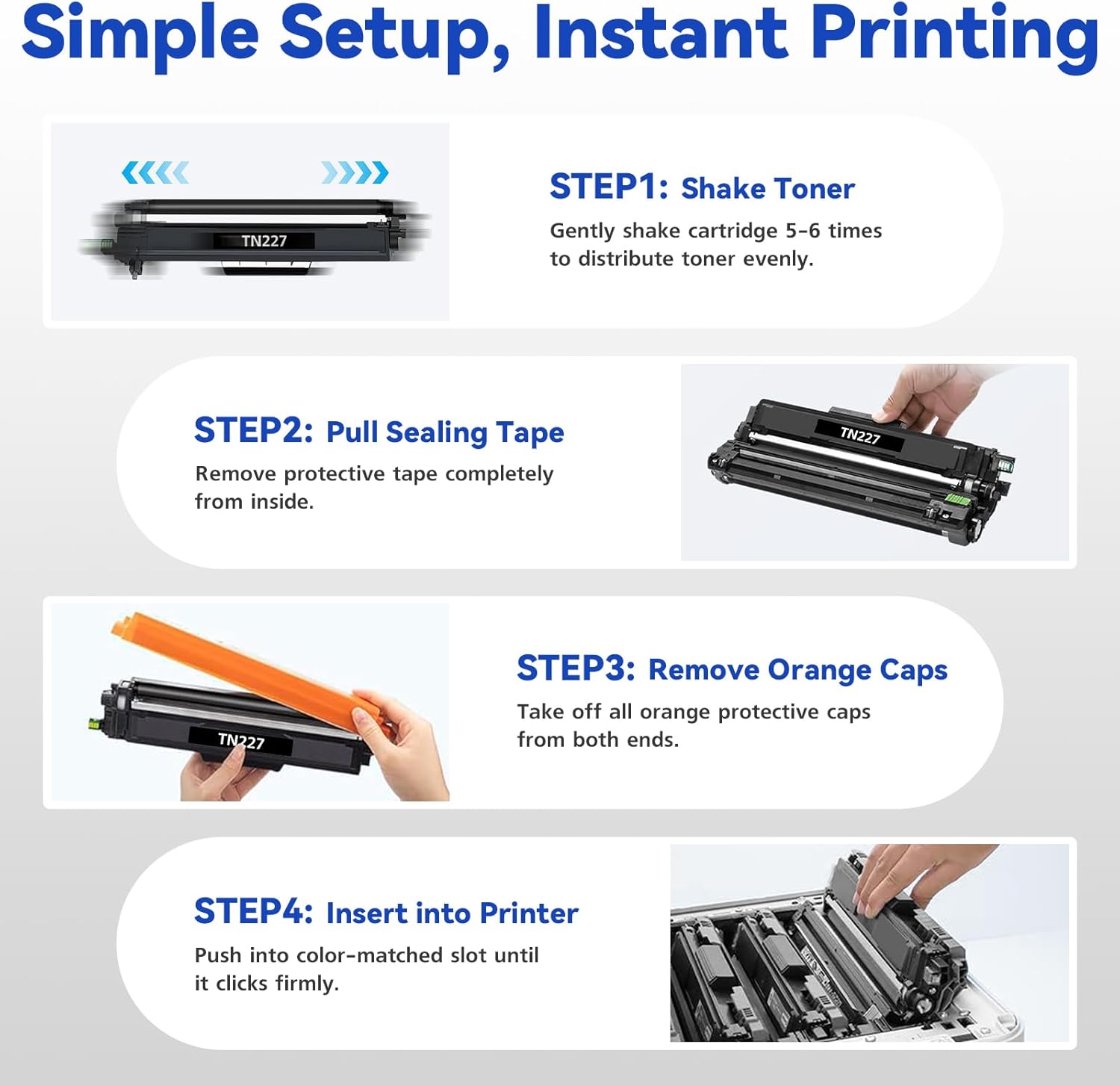 - TN227 Toner High Compatibility: TN227 toner cartridges Combo Pack Compatible for brother HL-L3290CDW HL-L3210CW HL-L3230CDW HL-L3270CDW HL-L3230CDN MFC-L3770CDW MFC-L3710CW MFC-L3750CDW MFC-L3730CDW DCP-L3510SDW DCP-L3550CDW