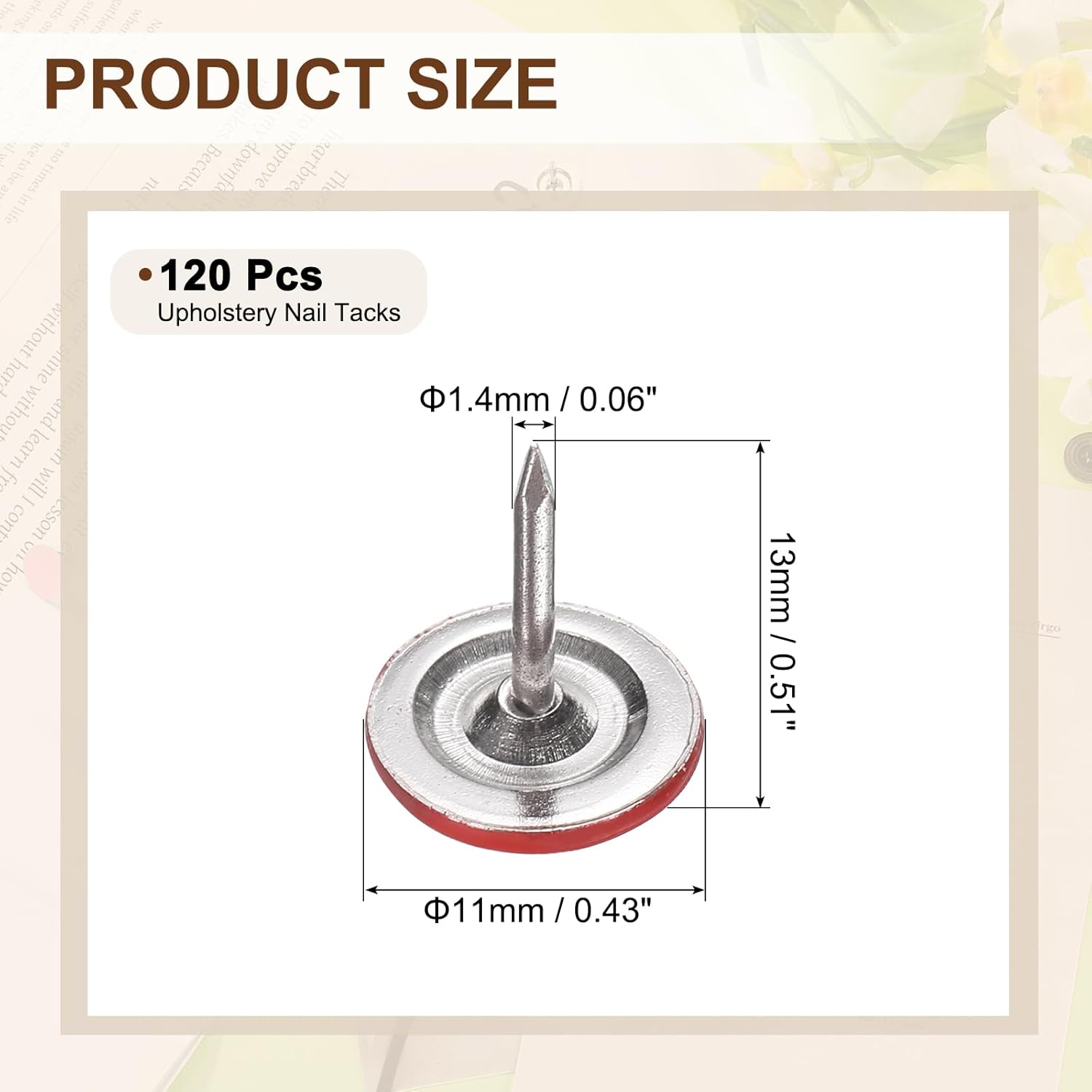 - [Size & Quantity] - The package comes with 120pcs decorative upholstery tacks. Sufficient quantity to meet your different daily needs. The overall size of upholstery nails is about 11mm x 10mm/0.43-inch x 0.39-inch(D*H)