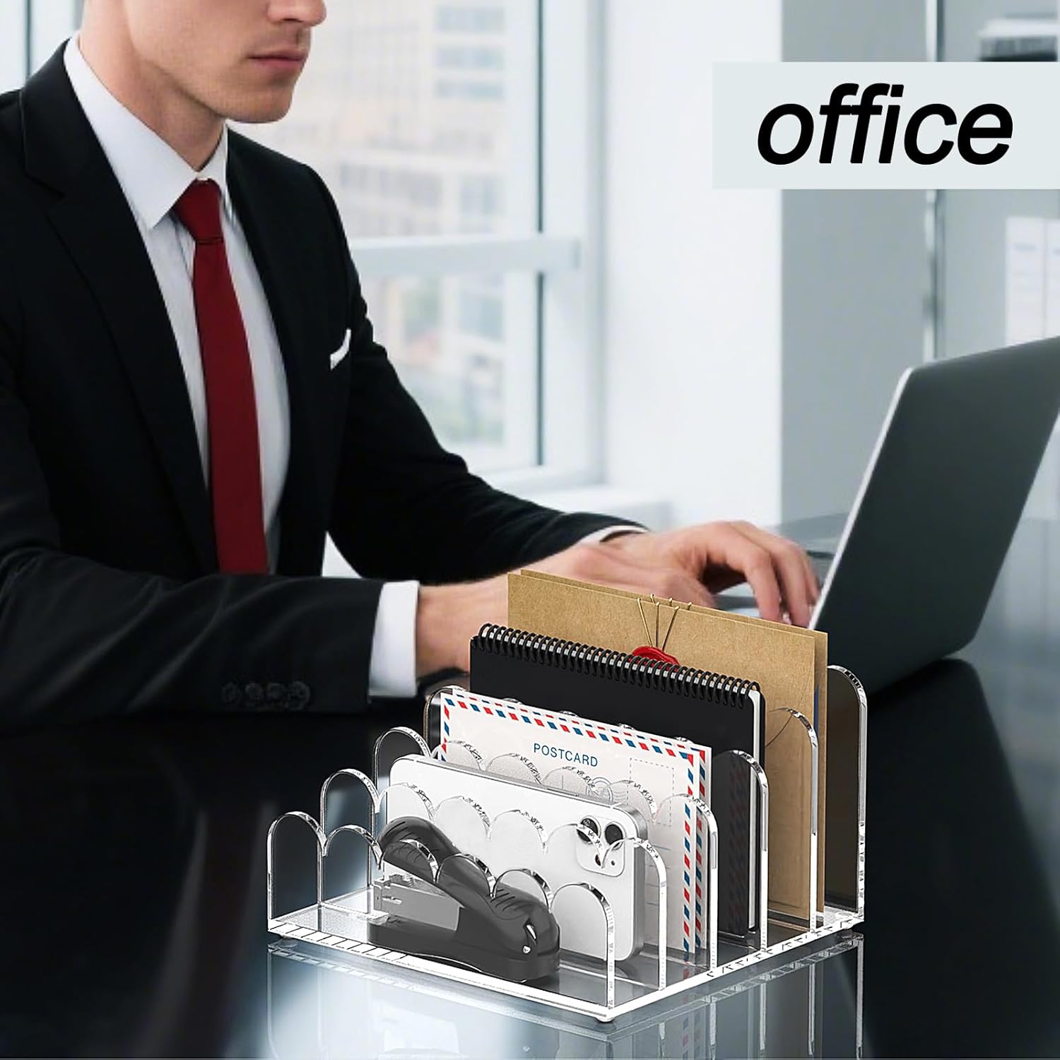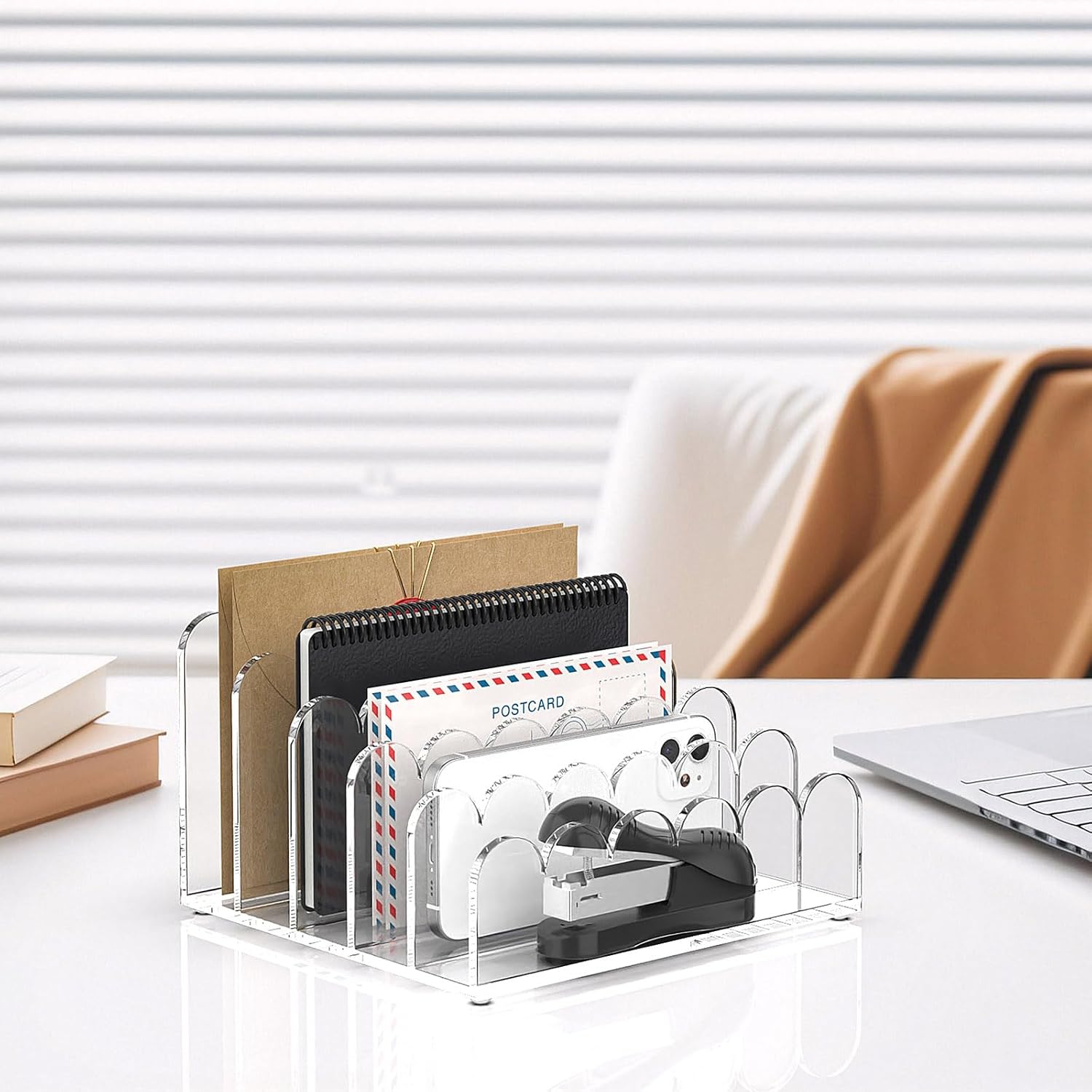 - 【🔍 Clear & Functional】 YAGELI’s 2 pack acrylic desk organizer features a 5-slot(measures 6.85"L x 6.54"W x 4.1"H)design for efficient sorting of mail, documents, and office supplies. The transparent acrylic construction allows easy visibility, making it a practical file organizer for desk. Ideal for maintaining a tidy workspace.