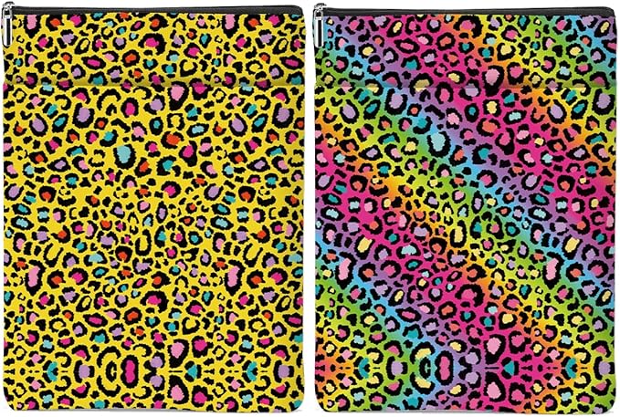 2 Pack Rainbow Leopard Print Book Sleeve, Books Protector,Books Pouch, Book Lovers Gifts,Bookish Gifts Waterproof Cover with Zipper,Leopard Decor Gift Bag for Women Sister Birthday Appreciation