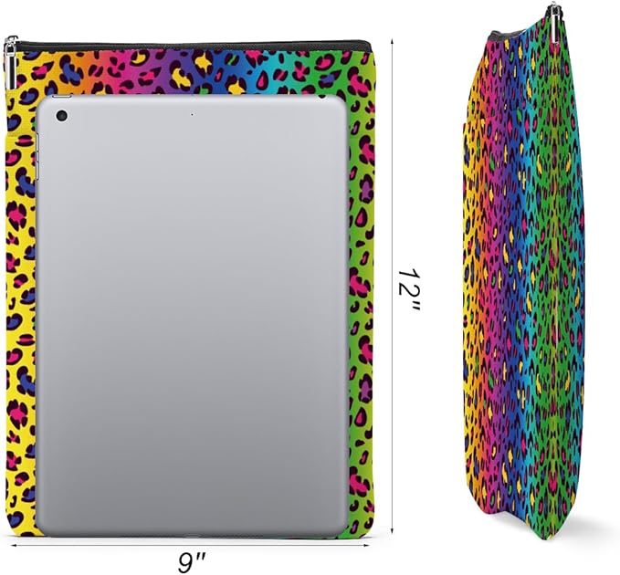 2 Pack Rainbow Leopard Print Book Sleeve, Books Protector,Books Pouch, Book Lovers Gifts,Bookish Gifts Waterproof Cover with Zipper,Leopard Decor Gift Bag for Women Manager Christmas Birthday