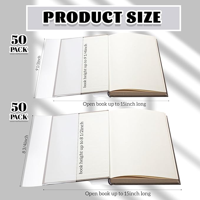 - Ample Size Coverage: each book cover protector fits books of 9.25 inches and 8.5 inches in height and 15 inches in width; And the width of the cover can be adjusted to fit more sizes; Its sizable design ensures that the entire book, including the front, back, and spine, is fully shielded, reducing the chances of accidental spills, stains, scratches or dust affecting your books; Note: please measure the size of the book before purchasing